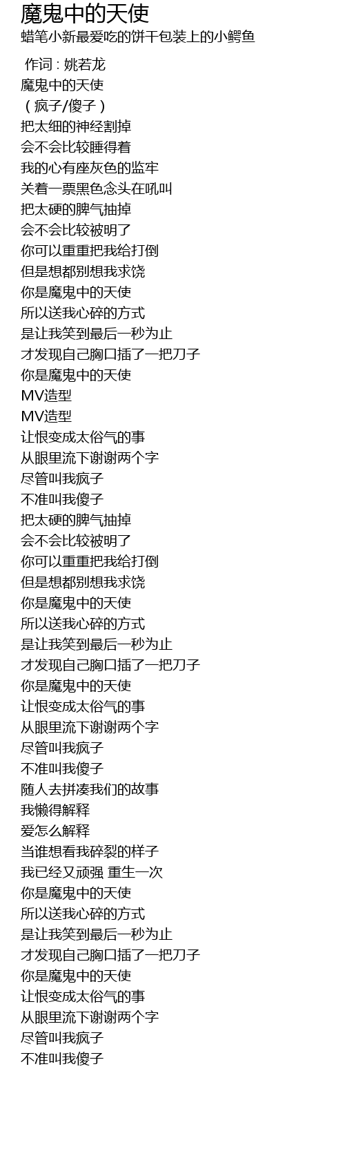 | [00:03.005] | mó guǐ zhōng de tiān shǐ |