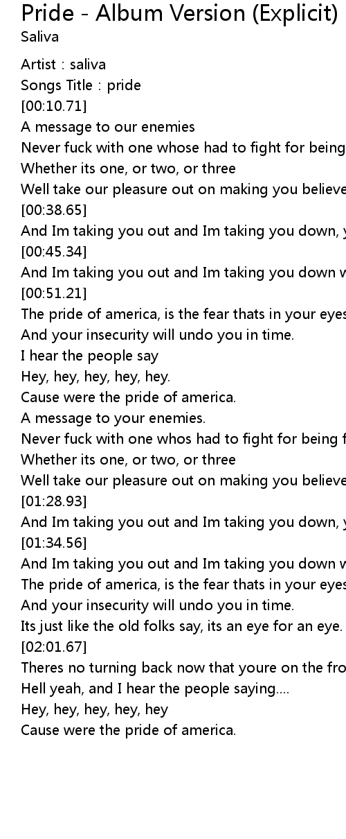 | [00:52.15] | The pride of america, is the fear thats in your eyes. |