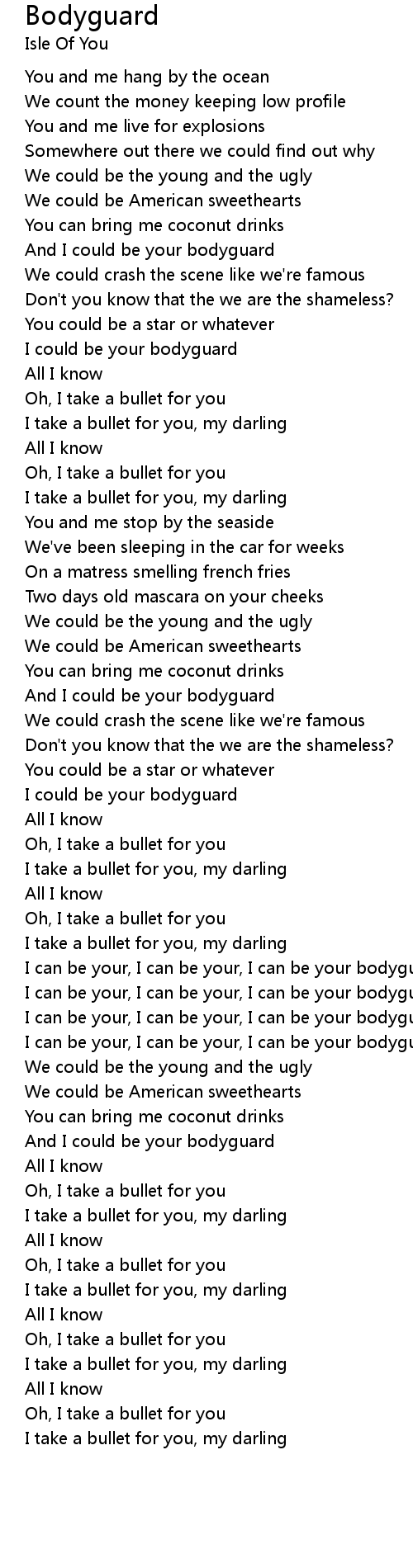 [02:00.318] I can be your, I can be your, I can be your bodyguard