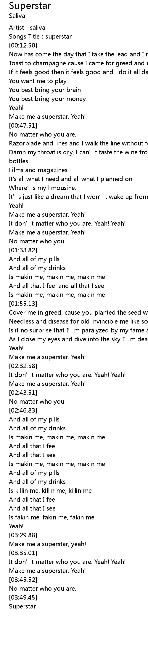 | [02:15.20] | Is it no surprise that I' m paralyzed by my fame and fortune. |