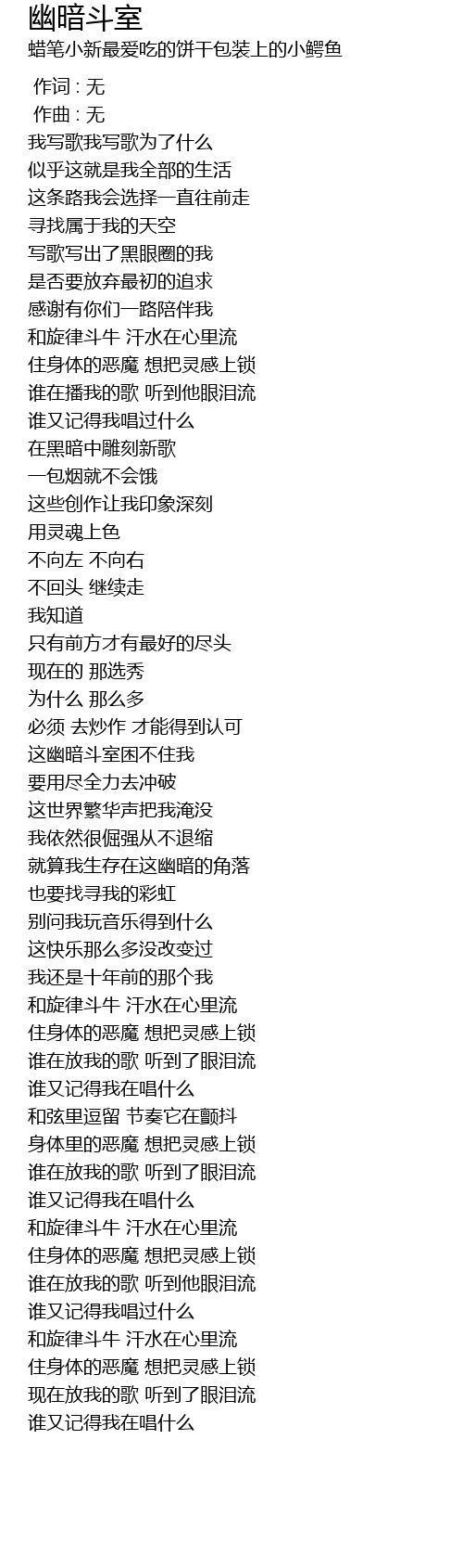 | Song | 幽暗斗室 |