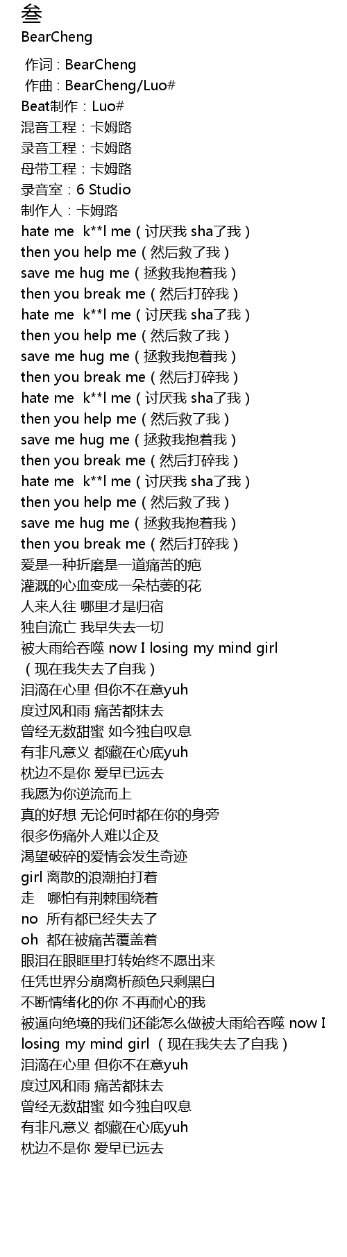 | [00:00.000] | 作词 : BearCheng |