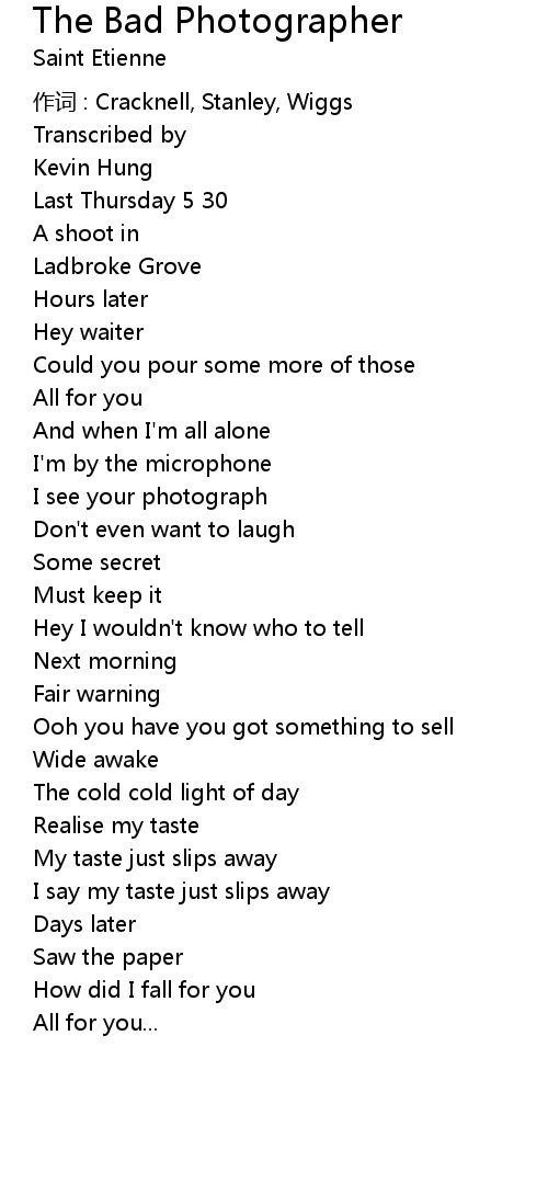 | Song | The Bad Photographer |