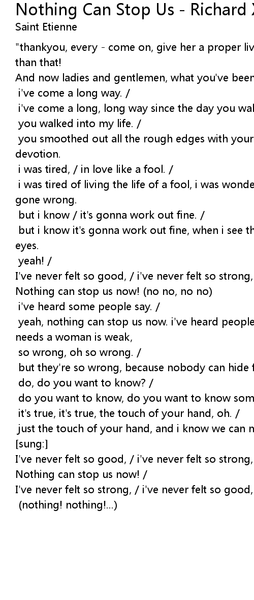 | Song | Nothing Can Stop Us - Richard X Re-Production |
