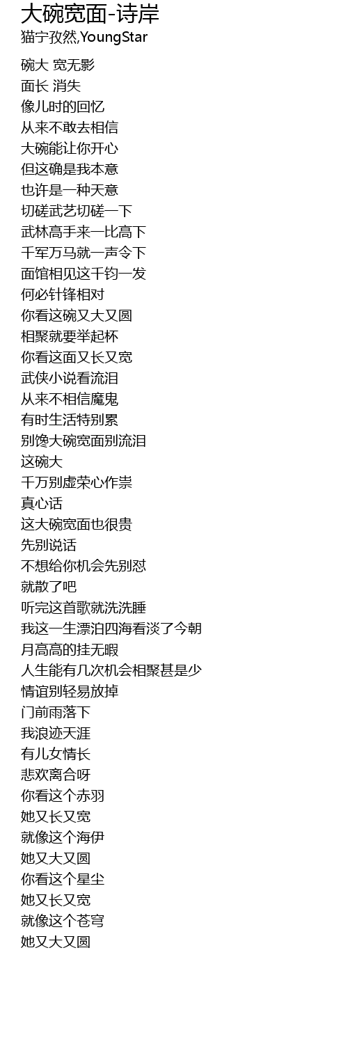 | [00:54.63] | 别馋大碗宽面别流泪 |