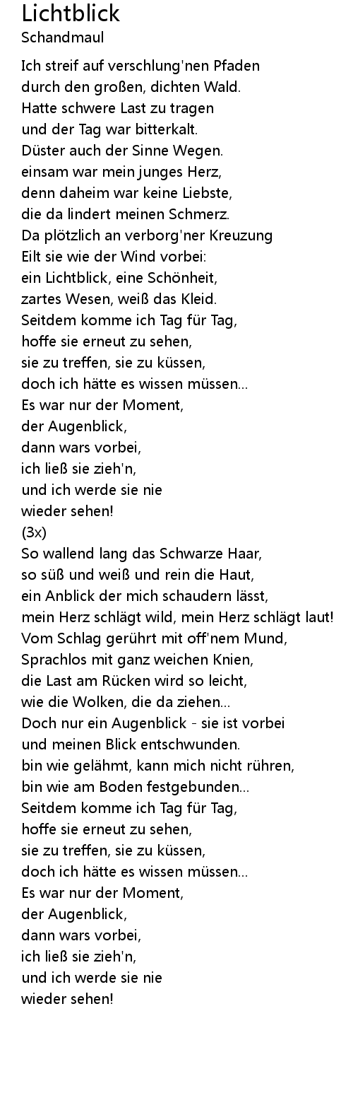 | Doch nur ein Augenblick sie ist vorbei | |