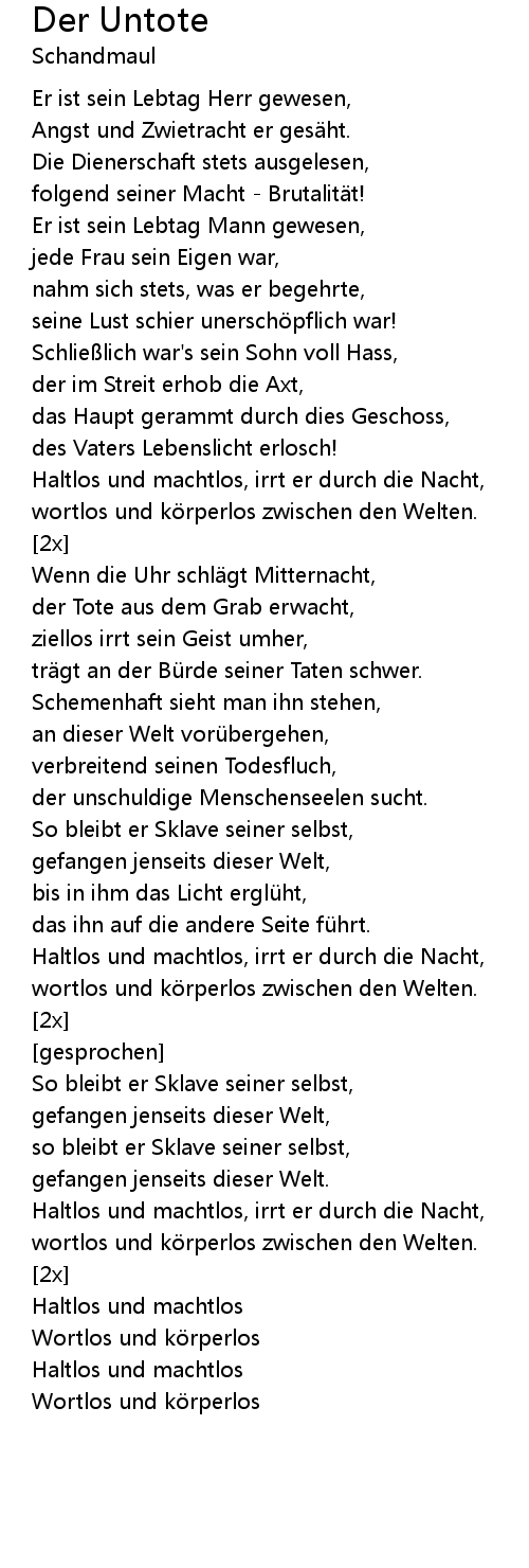 | Haltlos und machtlos, irrt er durch die Nacht, | |
