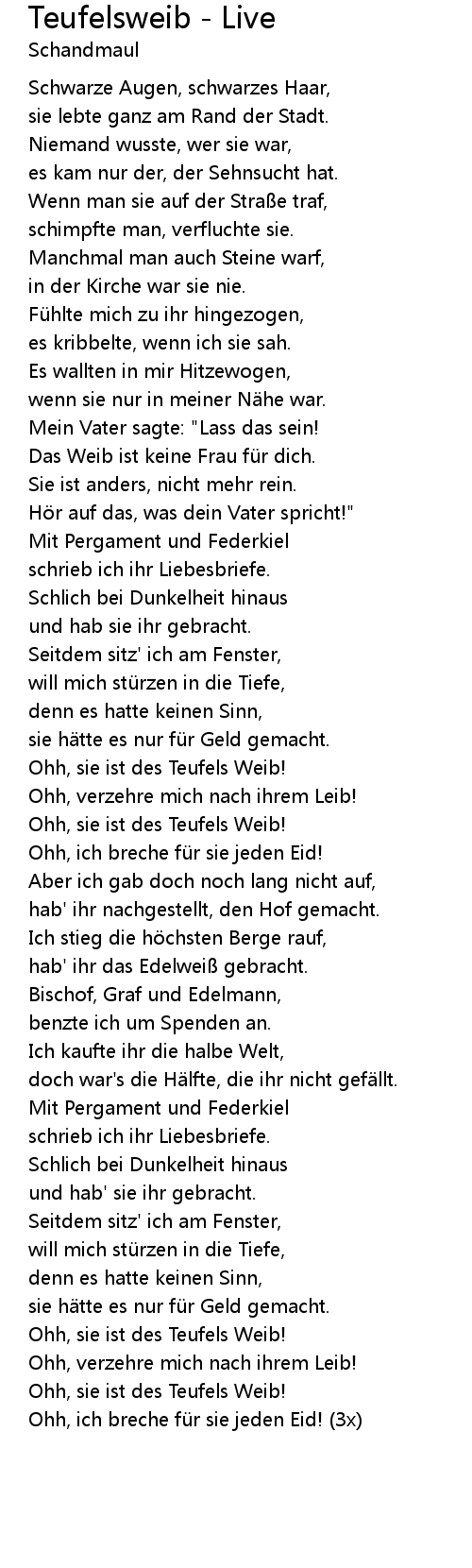 | Ohh, ich breche für sie jeden Eid! (3x) |
