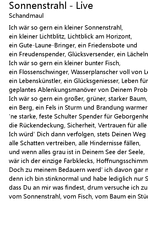 | Ich w r so gern ein kleiner Sonnenstrahl, | |