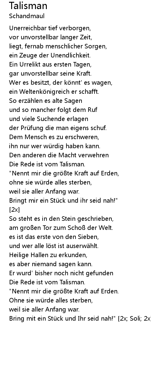 | [2x; Soli; 2x] | Bring mit ein Stü ck und Ihr seid nah!" |