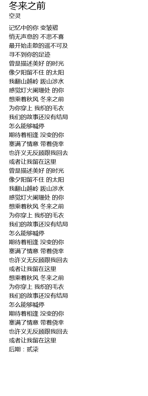 | [00:53.62] | 想乘着秋风 冬来之前 |