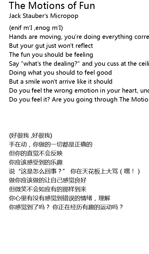 | [00:27.100] | Do you feel it? Are you going through The Motions of Fun? |