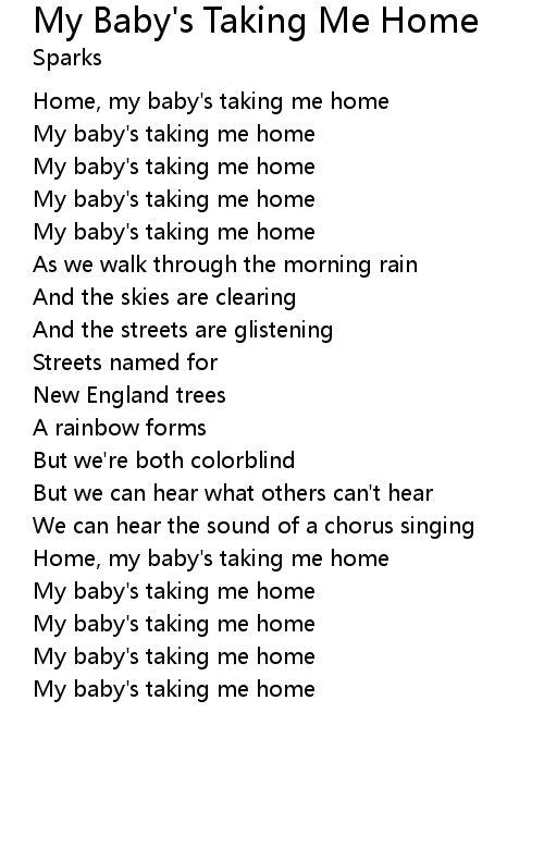 Home, my baby's taking me home |