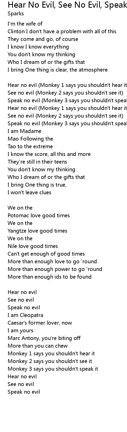Speak no evil (Monkey 3 says you shouldn't speak it) |