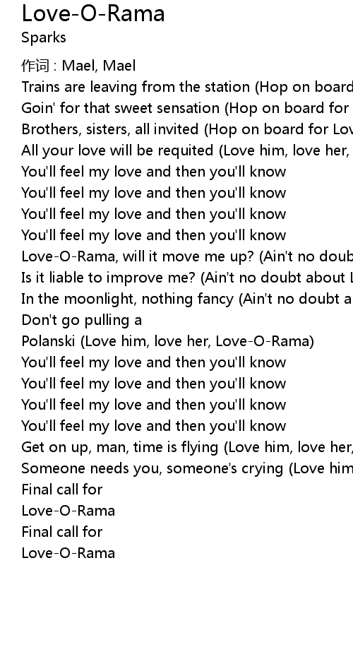 | LoveORama, will it move me up? Ain' t no doubt about LoveORama | |
