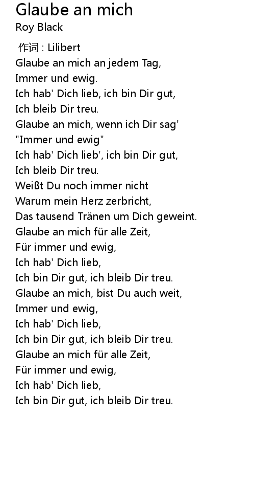 | [01:12.236] | Glaube an mich fü r alle Zeit, |