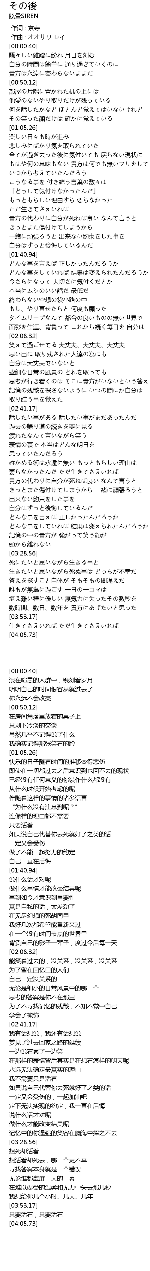 | [03:30.22] | 死にたいと思いながら生きる事と |
