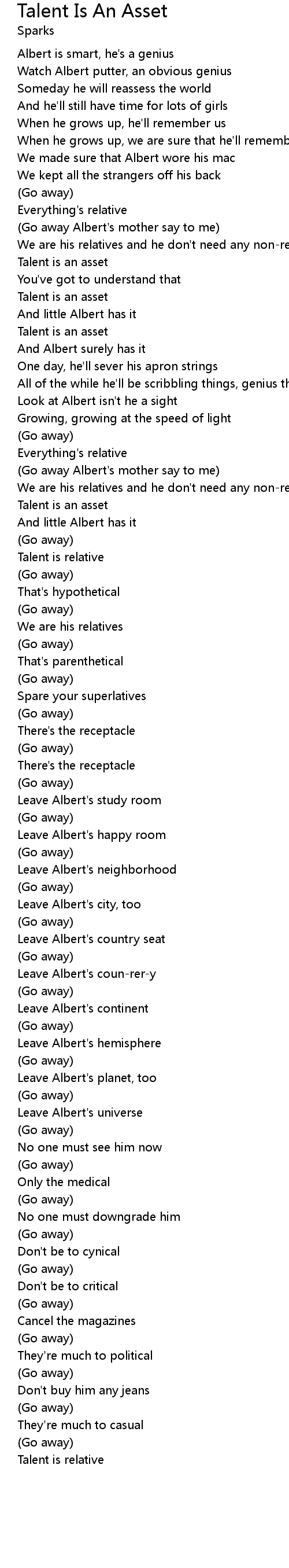 (Go away Albert's mother say to me) |