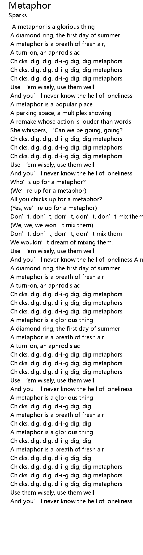 | Chicks, dig, dig, d-i-g dig, dig metaphors | |