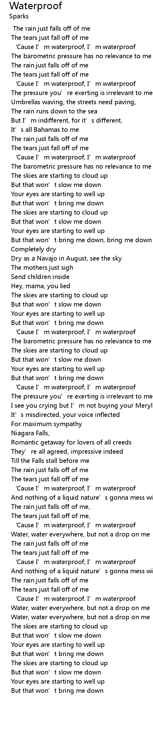 | ' Cause I' m waterproof, I' m waterproof | |