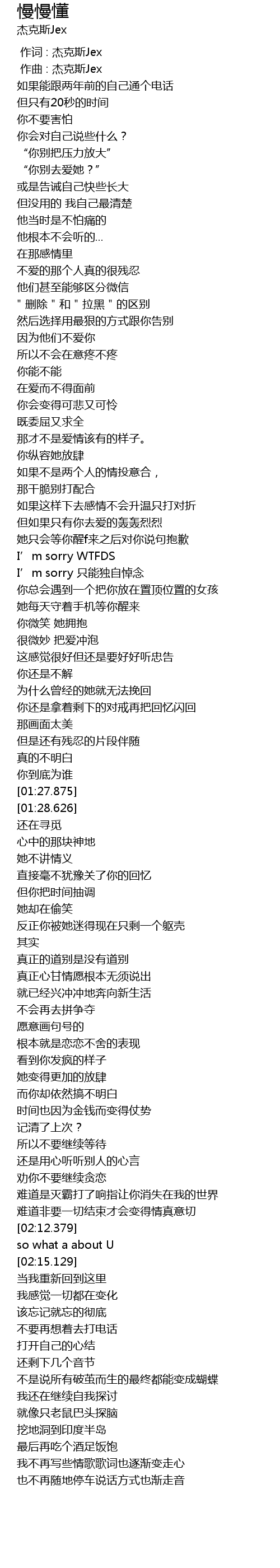 | [00:00.000] | 作词 : 杰克斯Jex |