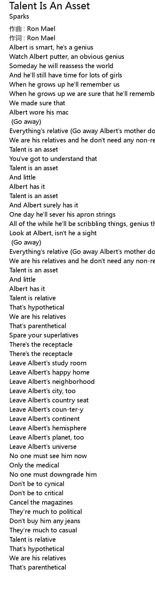 | 作词 : Ron Mael | |