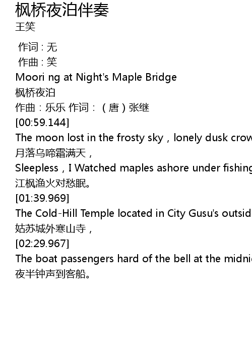 | [00:22.896] | 作曲:乐乐 作词:(唐)张继 |