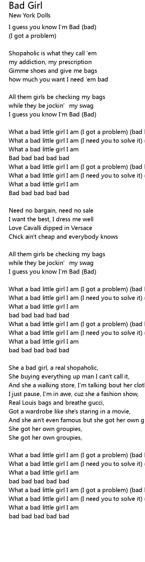 | What a bad little girl I am I got a problem bad bad | |
