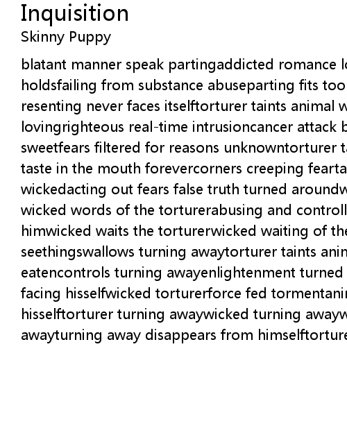 blatant manner speak partingaddicted romance love testedbonding cement no longer holdsfailing from substance abuseparting fits too young to grow oldwicked resenting never faces itselftorturer taints animal waitsno evironment torturer lovingrighteous real-time intrusioncancer attack bleaching desserts so sweetfears filtered for reasons unknowntorturer taints animal waitsleaves bitter taste in the mouth forevercorners creeping feartasting force fed lies of the wickedacting out fears false truth turned aroundwicked torture wicked wickedthe wicked words of the torturerabusing and controlling anyone thats useful to himwicked waits the torturerwicked waiting of the torturerreads story truth seethingswallows turning awaytorturer taints animal with hatebelieved poison eatencontrols turning awayenlightenment turned awayno change the wicked not facing hisselfwicked torturerforce fed tormentanimal torturewicked not facing hisselftorturer turning awaywicked turning awaywicked torturerwicked turning awayturning away disappears from himselftortures the animaltortures the animal |