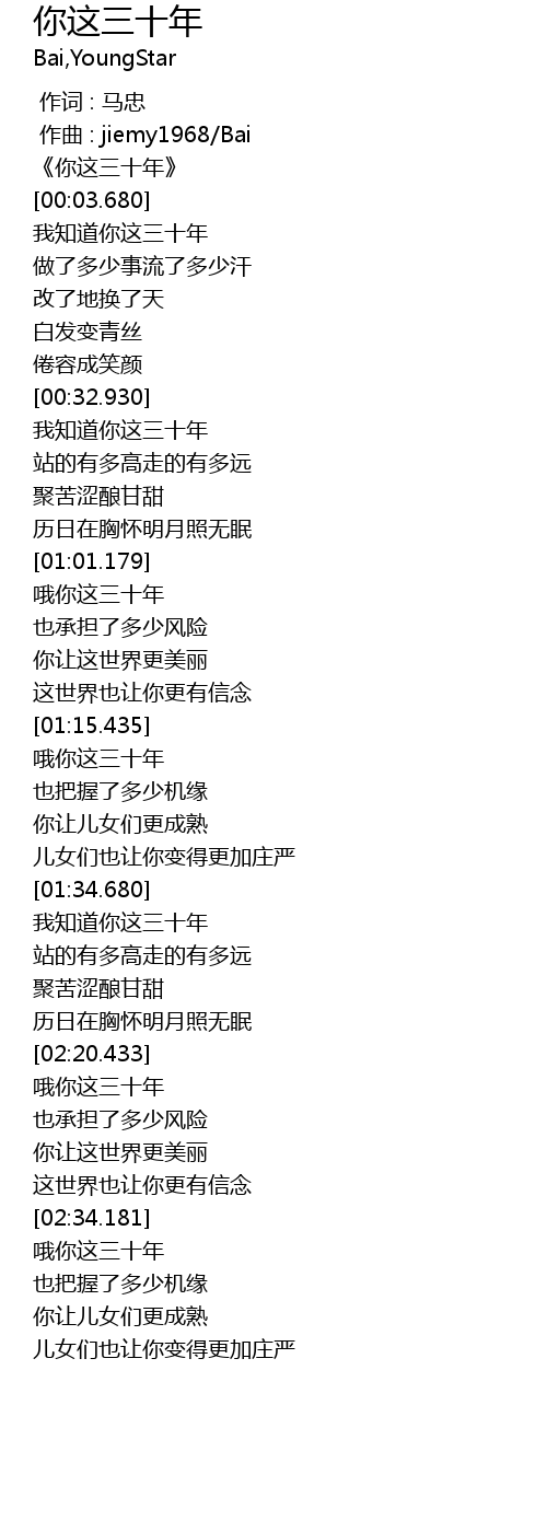 | [00:01.931] | 《你这三十年》 |