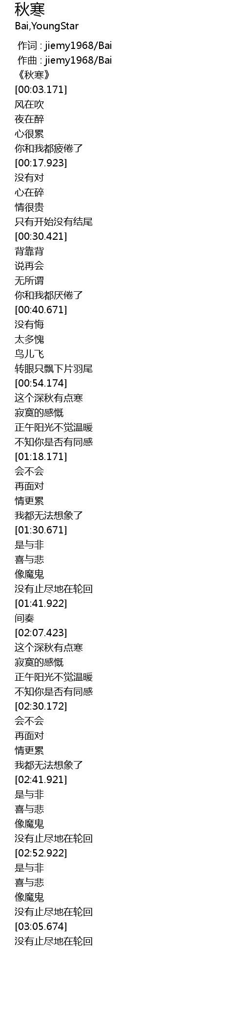| [00:56.422] | 这个深秋有点寒 |
