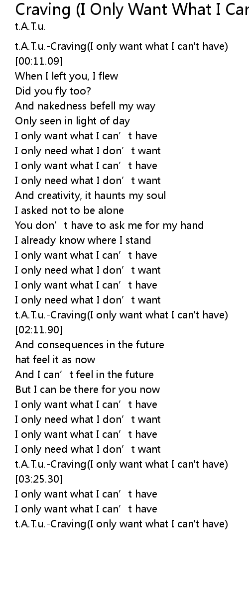 | [01:54.46] | t. A. T. u. Craving I only want what I can' t have |