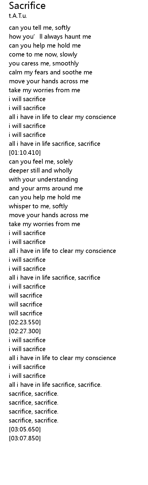 | [02:00.130] | all i have in life sacrifice, sacrifice |
