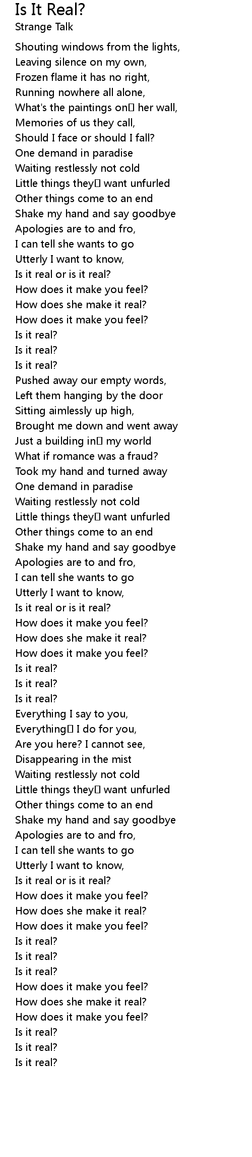 | Song | Is It Real? |