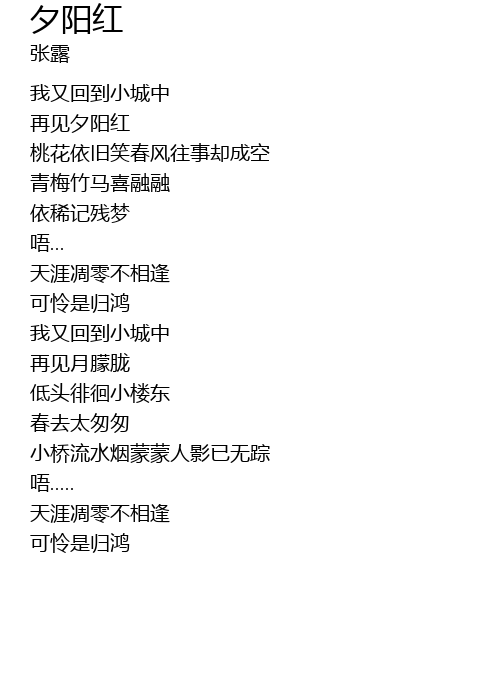 | [00:27.76] | wo you hui dao xiao cheng zhong |