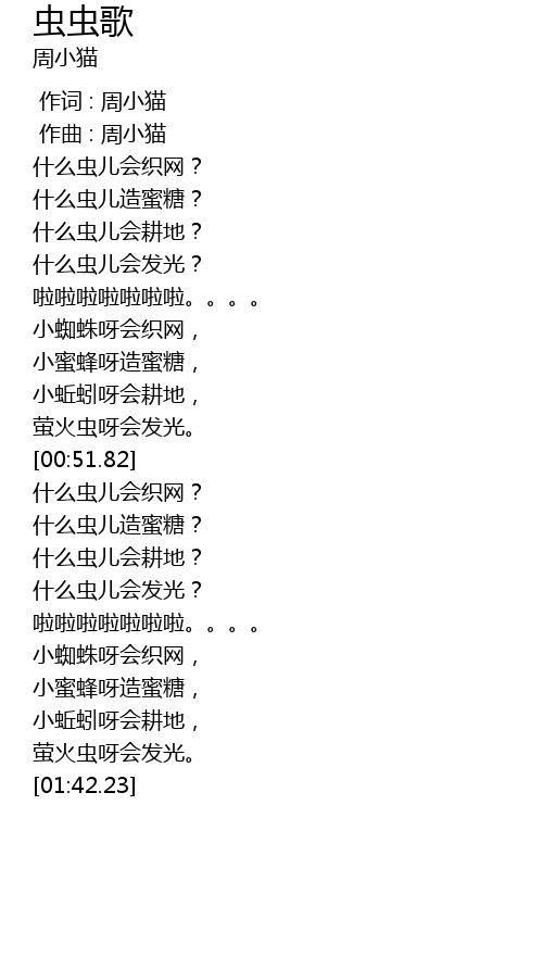 | [00:16.76] | 什么虫儿造蜜糖? |