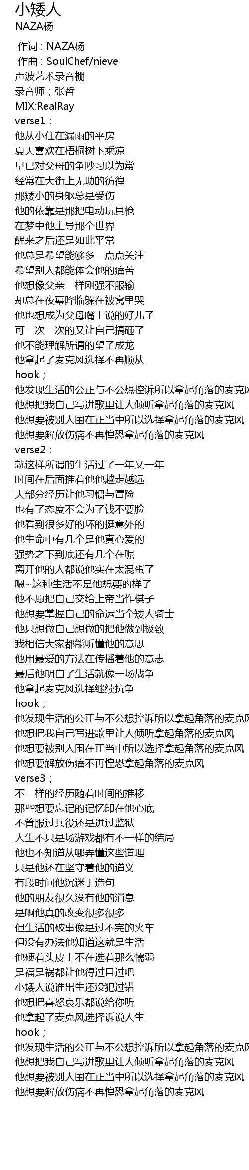 | [02:59.742] | xiǎo ǎi rén shuō shuí chū shēng huán méi fàn guò cuò |