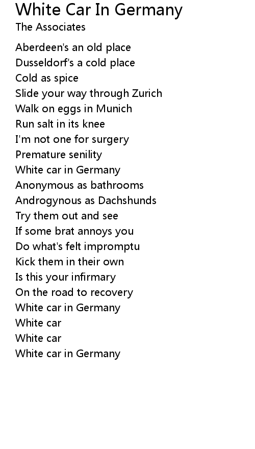 | Song | White Car In Germany |