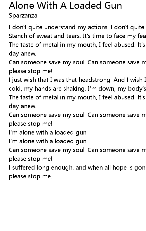 Can someone save my soul. Can someone save me now. I'm alone with a loaded gun, please stop me! |