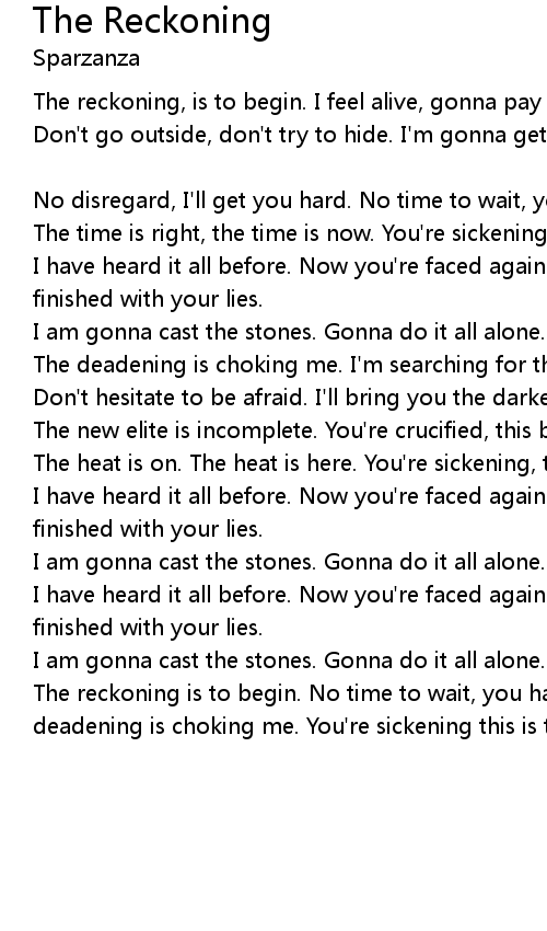The time is right, the time is now. You're sickening, this is the reckoning.