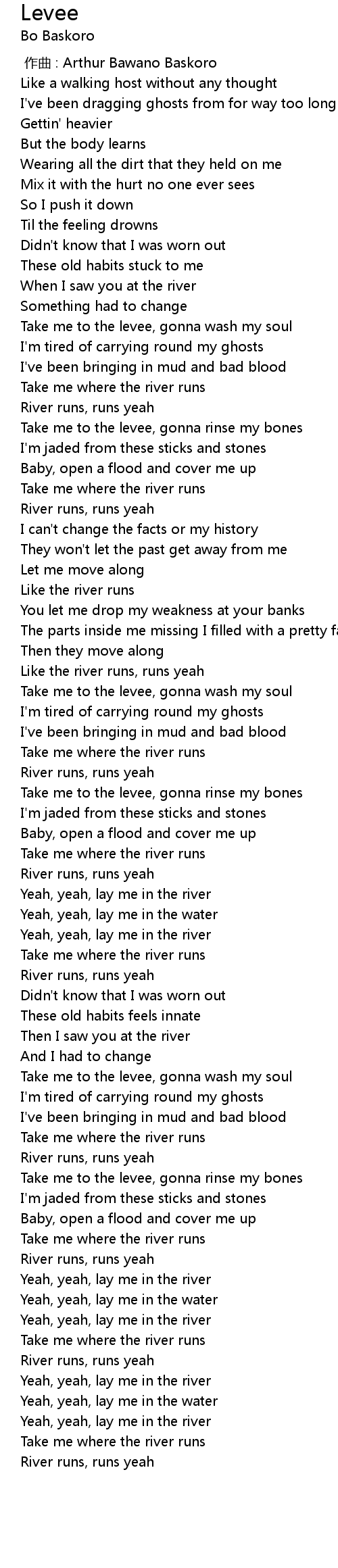 | [00:53.882] | Take me to the levee, gonna rinse my bones |