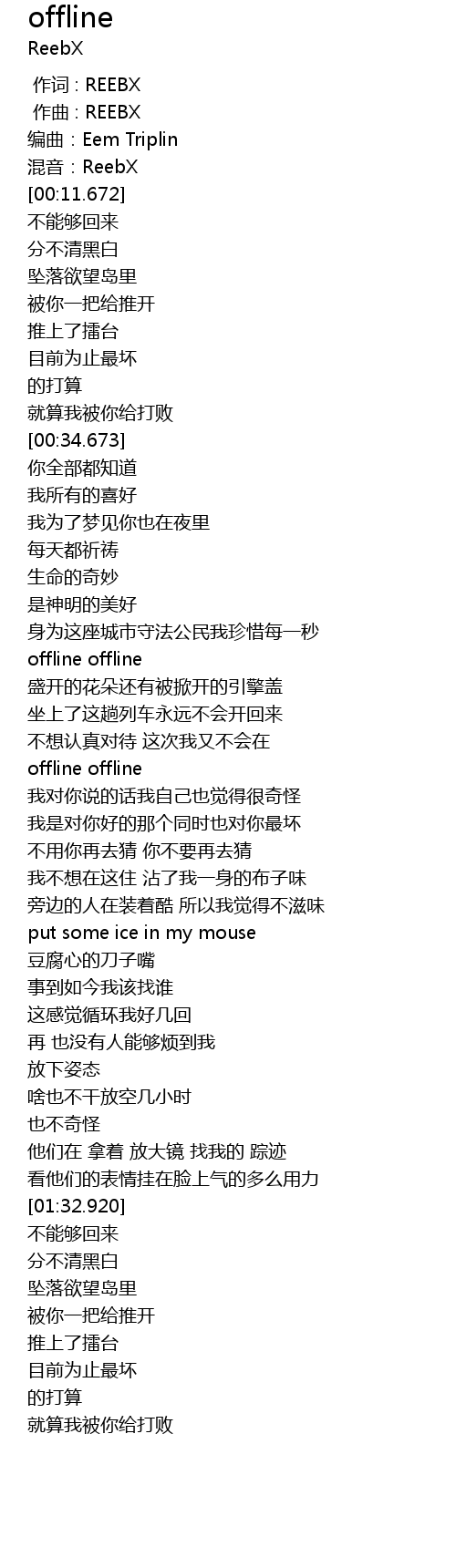 | [00:05.674] | biān qǔ: Eem Triplin |