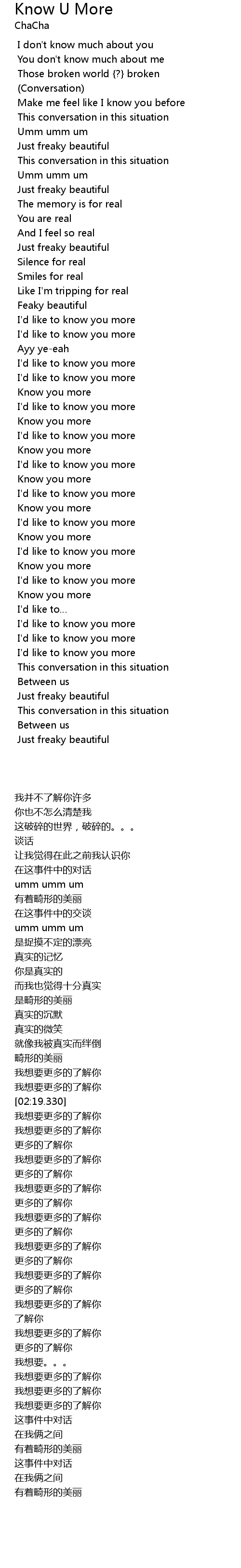| [02:59.100] | Know you more |