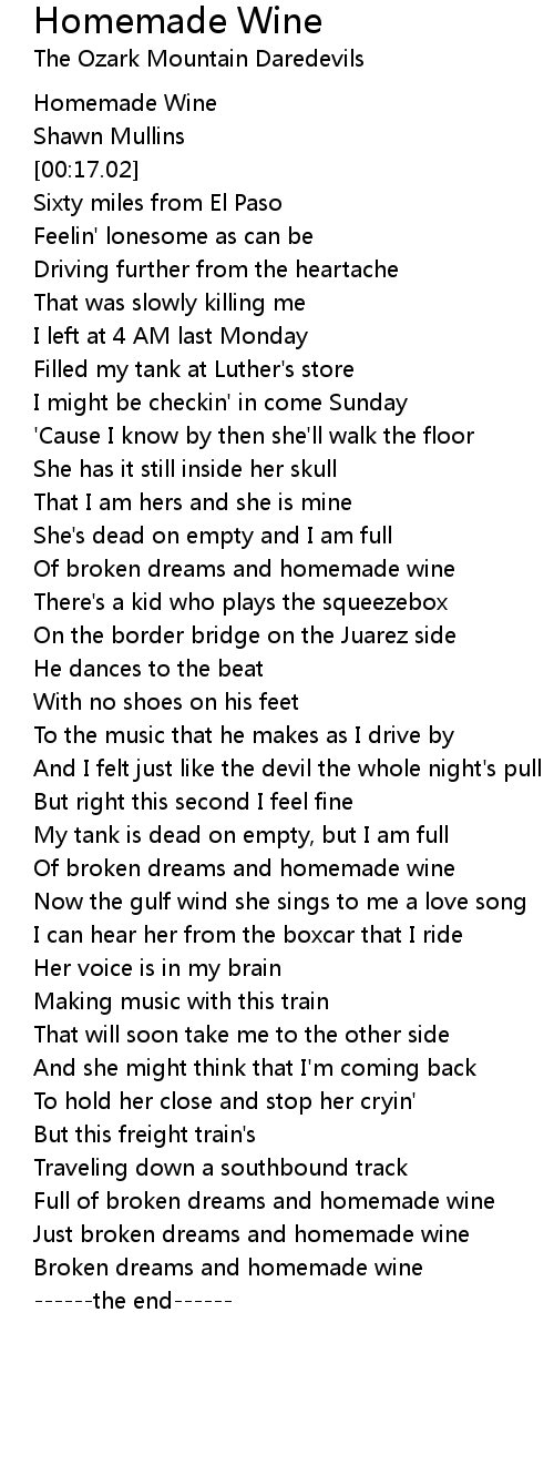Full of broken dreams and homemade wine |