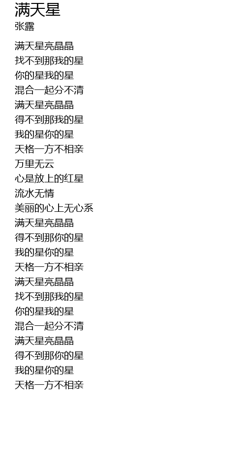 | [00:11.340] | 找不到那我的星 |