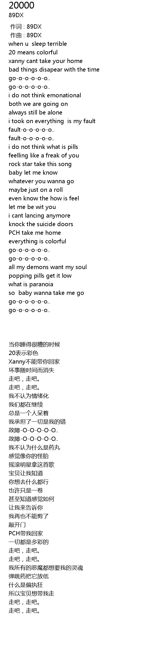 | [00:00.000] | 作词 : 89DX |