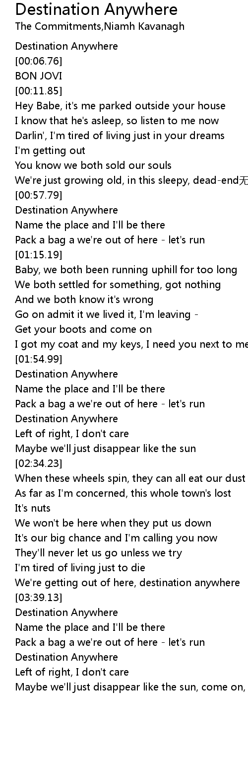 | [03:36.83] | We're getting out of here, destination anywhere |