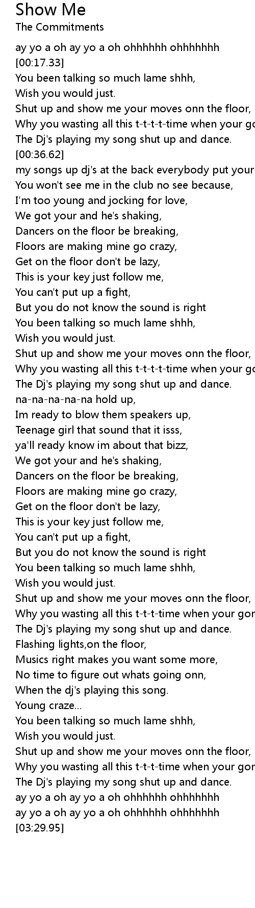Shut up and show me your moves onn the floor, |