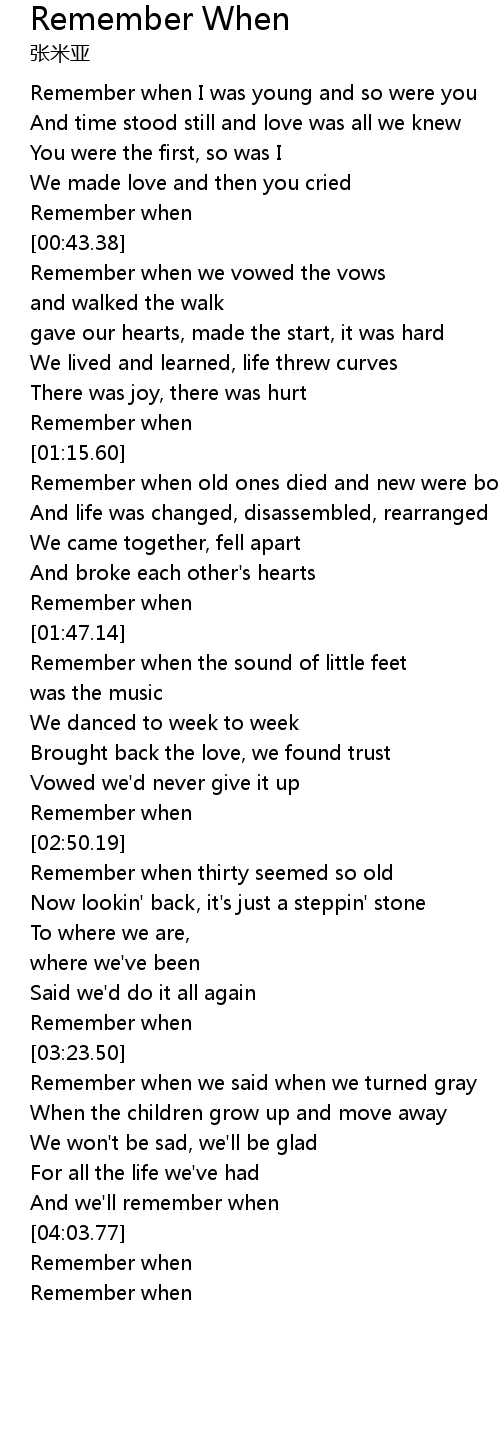 | [00:40.47] | Remember when |