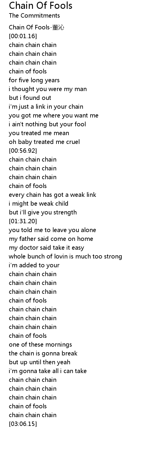 | [00:00.17] | Chain Of Fools dǒng qìn |